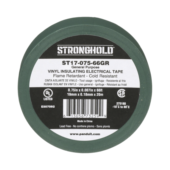 Cinta Eléctrica STRONGHOLD para Aislar, de PVC, Uso General Reparación y Mantenimiento, Grosor de 0.18mm (7 mil), Ancho de 19mm, y 20.12m de Largo, Color Verde ST17-075-66GR