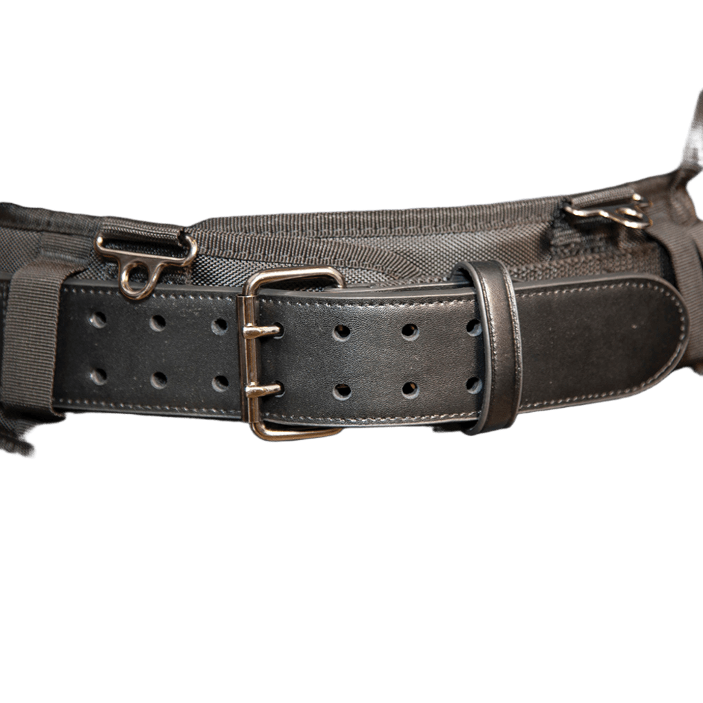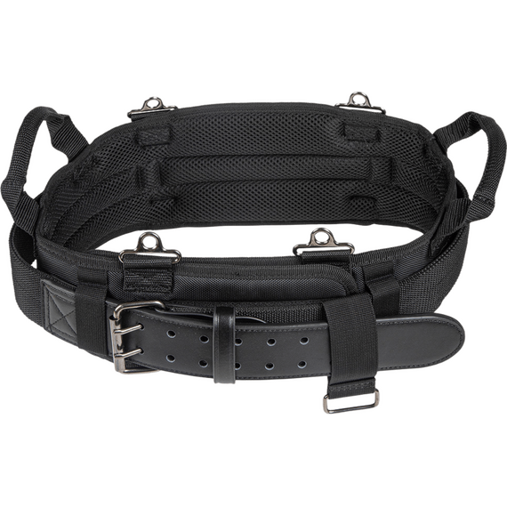Cree su propio cinturón de herramientas, y transporte solo las herramientas que necesita. El cinturón acolchado con interior de malla de trama abierta es cómodo. Puntos de conexión metálicos que brindan mayor soporte cuando se enganchan los tirantes. El cinturón viene con manijas laterales para levantarlo con facilidad y se ajusta a contornos de cintura de 35'' a 39'' (88,9 a 99,1 cm).