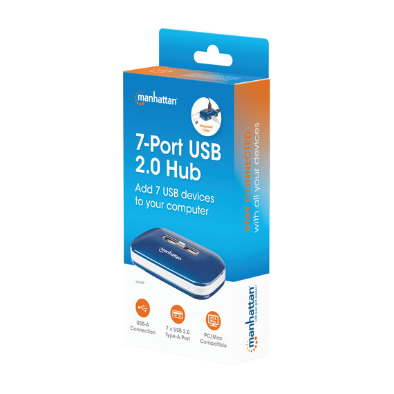 Concentrador USB Manhattan - USB - Externo - Azul - 7 Total USB Port(s) - 7 USB 2.0 Port(s) - PC, Mac