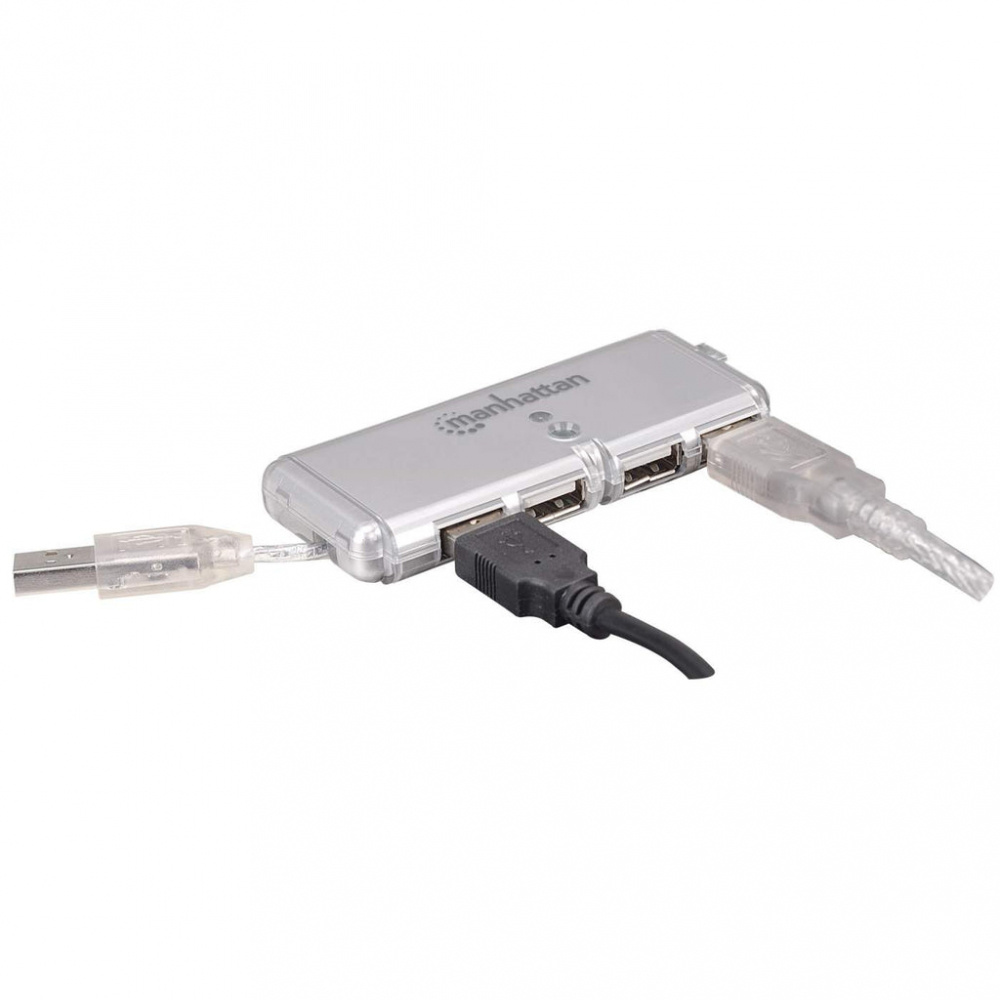 Concentrador USB Manhattan - USB - Externo - Plata - 4 Total USB Port(s) - 4 USB 2.0 Port(s) - PC, Mac