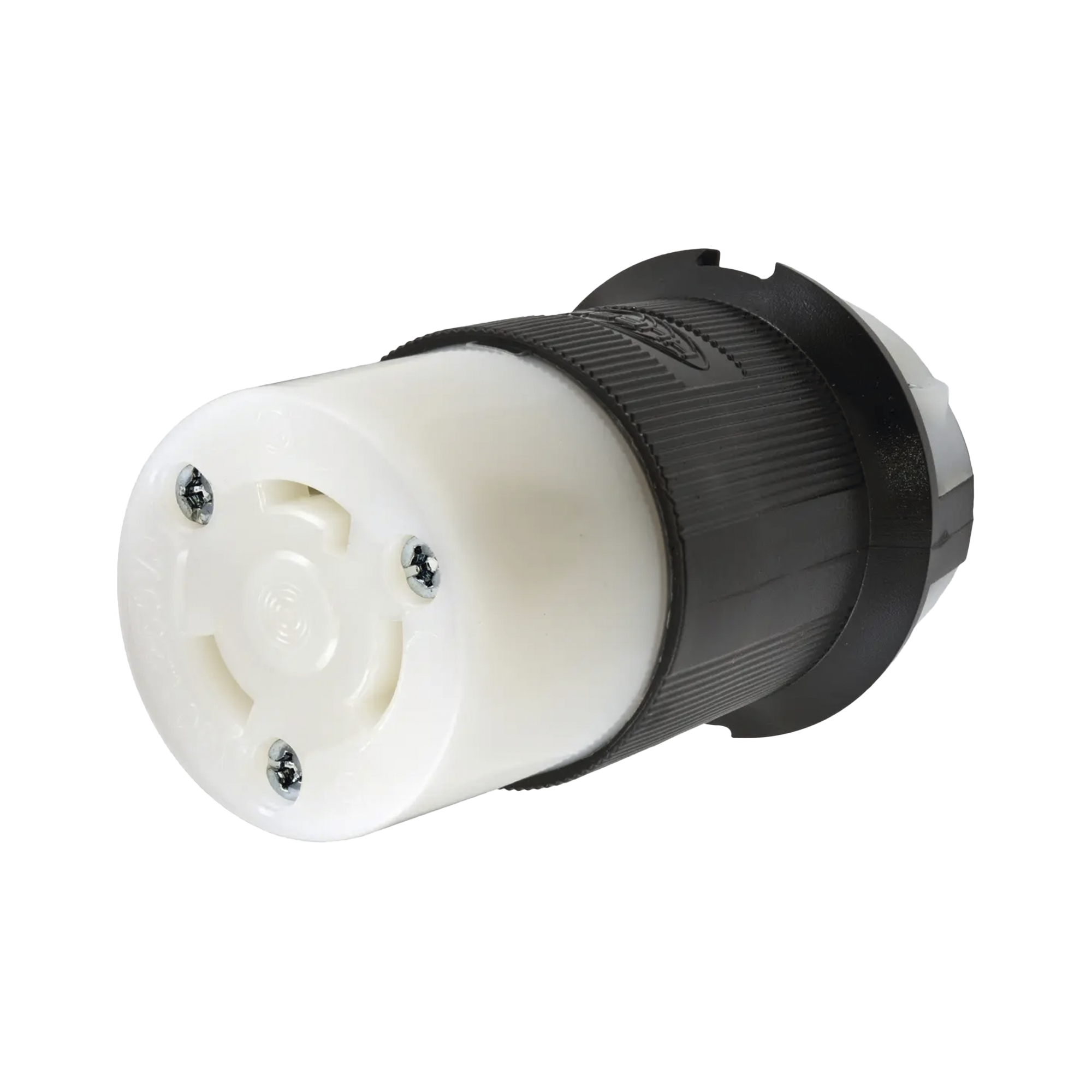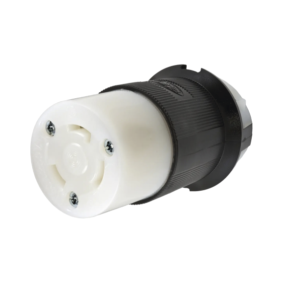 Conector Industrial con Bloqueo de Media Vuelta / 30 A 250 V CA / 2 Polos 3 Hilos / Color Blanco y Negro / Nema L6-30R. HUB-HBL-2623