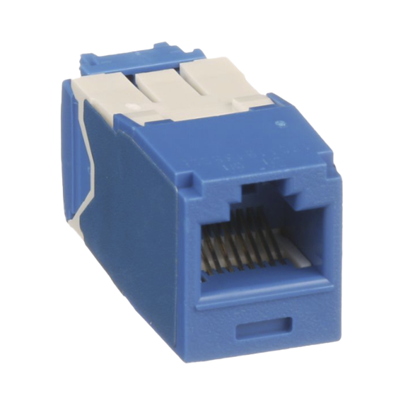 El módulo de conector UTP Categoría 6A/Clase EA de 8 posiciones, se termina en un cable de par trenzado sin blindaje de 4 pares, 22 - 26 AWG d 100 ohms y no requiere el uso de una herramienta de impacto. La tapa de terminación tiene un código de color azul para designar el rendimiento de la Categoría 6A e incluye una etiqueta universal codificada para los esquemas de cableado T568A y T568B. El módulo de conector Mini-Com® TX6A 10Gig UTP se instala como parte del sistema de cableado de cobre TX6A 10Gig UTP para lograr el rendimiento certificado IEEE 10GBASE-T.