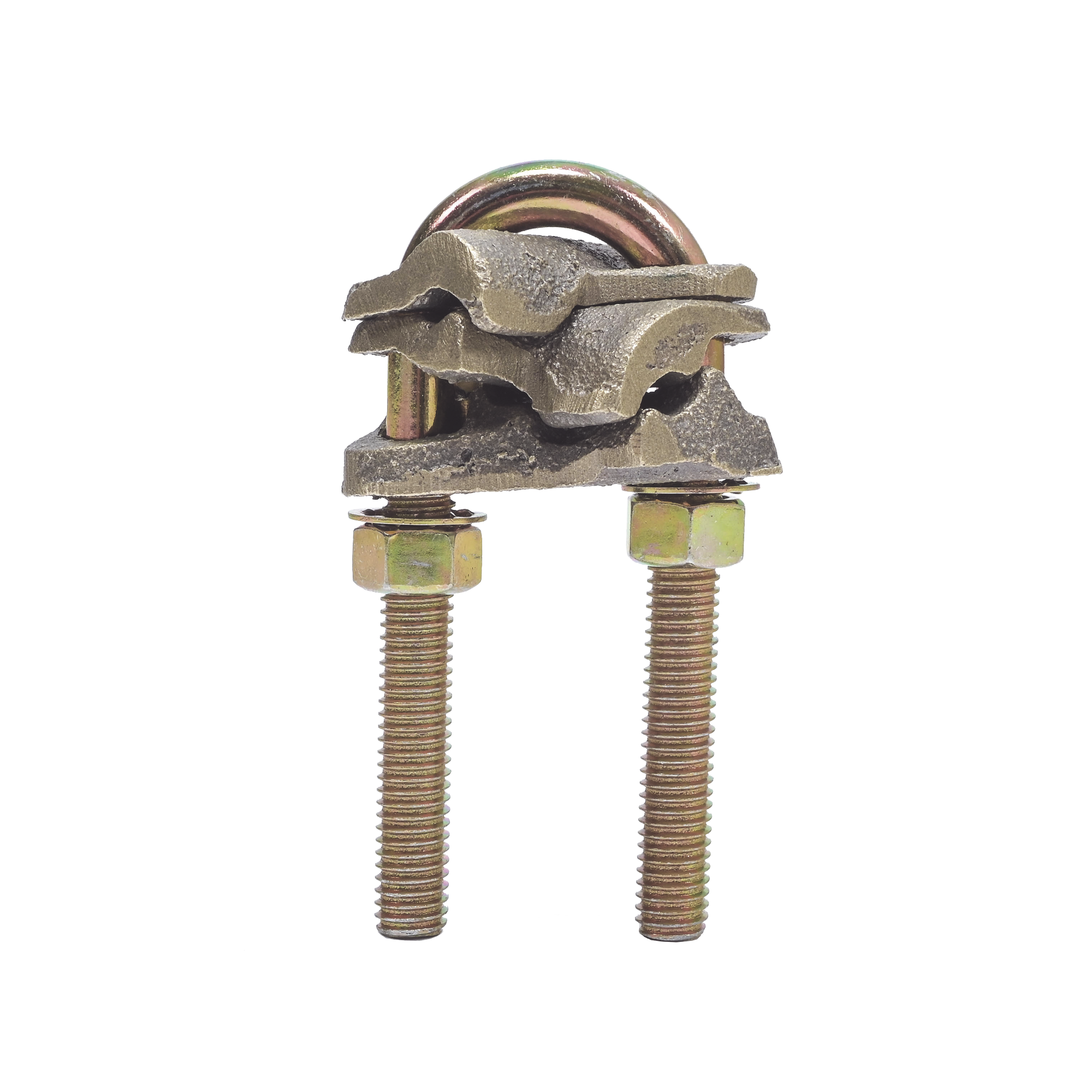 - Conector mecánico fabricado por medio de fusión en bronce para realizar unión en forma de cruz (X).