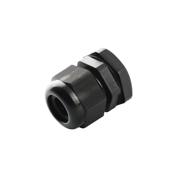 - Conector plástico negro tipo glándula