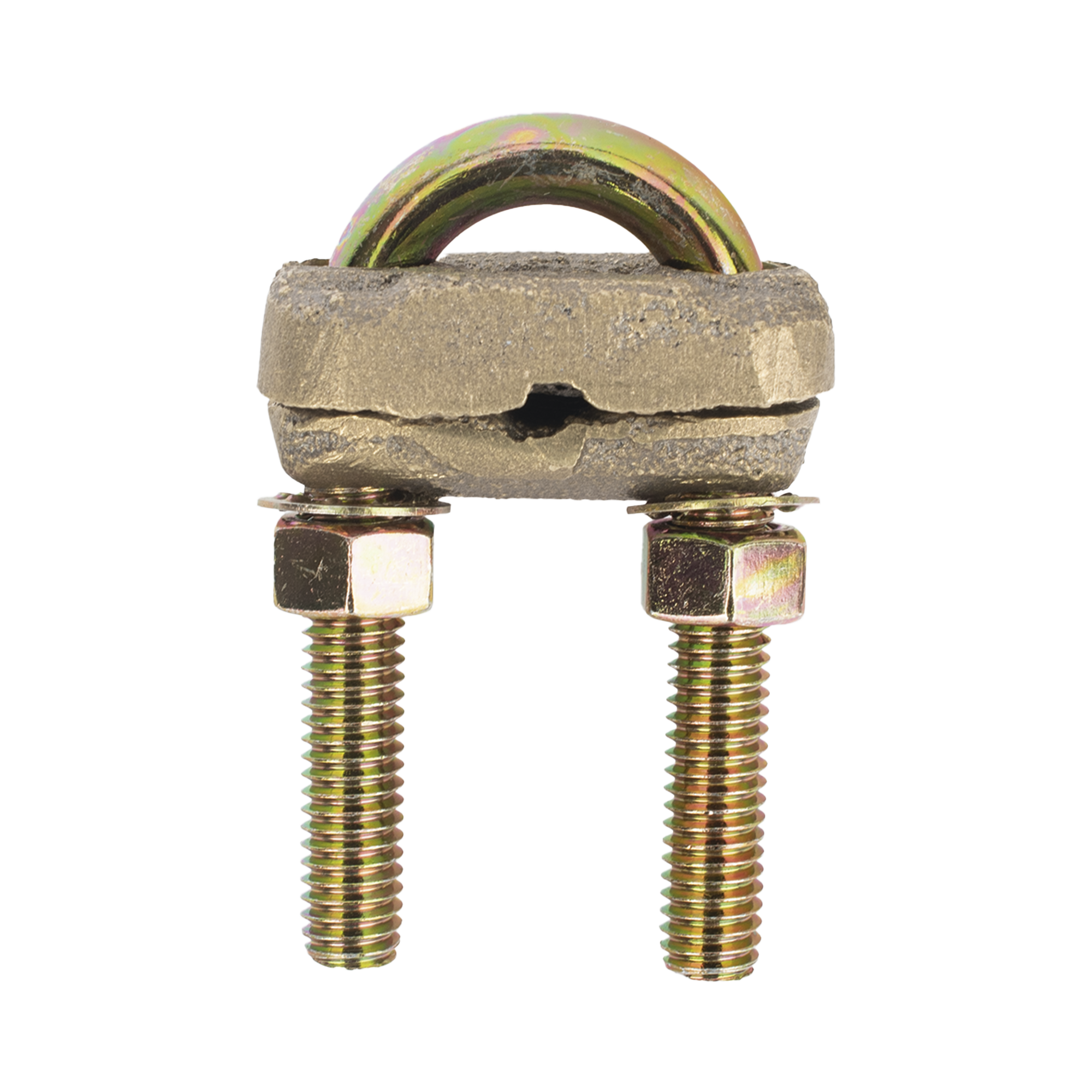 Conector mecánico fabricado por medio de fusión en bronce para realizar unión entre varilla o tubo a cable de 4 a 2/0 AWG.