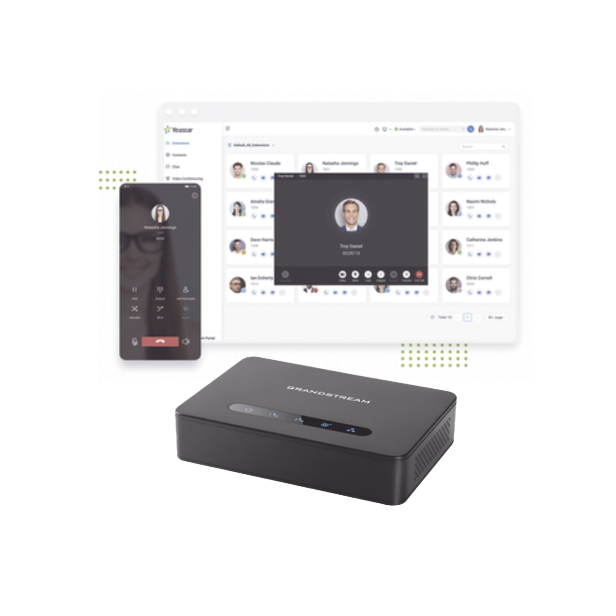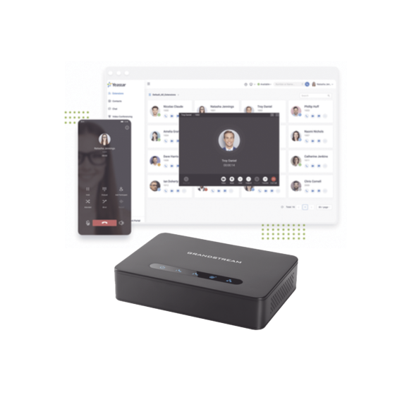 - Conmutador en nube Yeastar con 10 extensiones Enterprise anuales (cada extensión puede aprovisionarse en hasta 5 dispositivos)