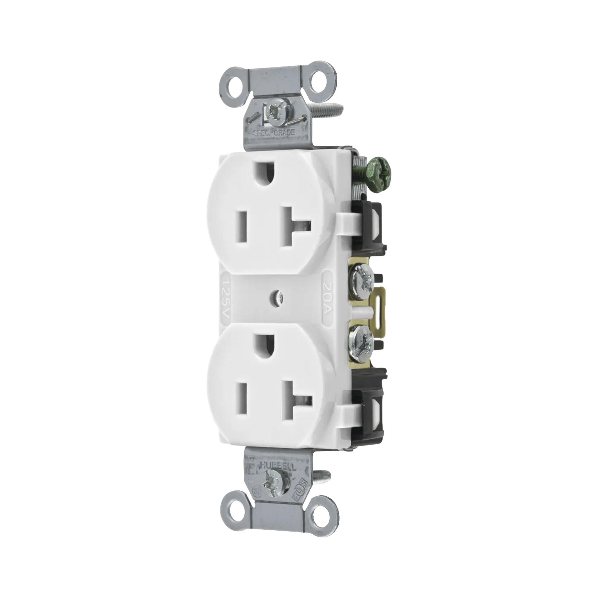 Contacto Dúplex 20 A, 125 V, 2 Polos, 3 Hilos, Cableado Posterior y Lateral, Color Blanco (Nema 5-20R). HUB-BR-20-WHI