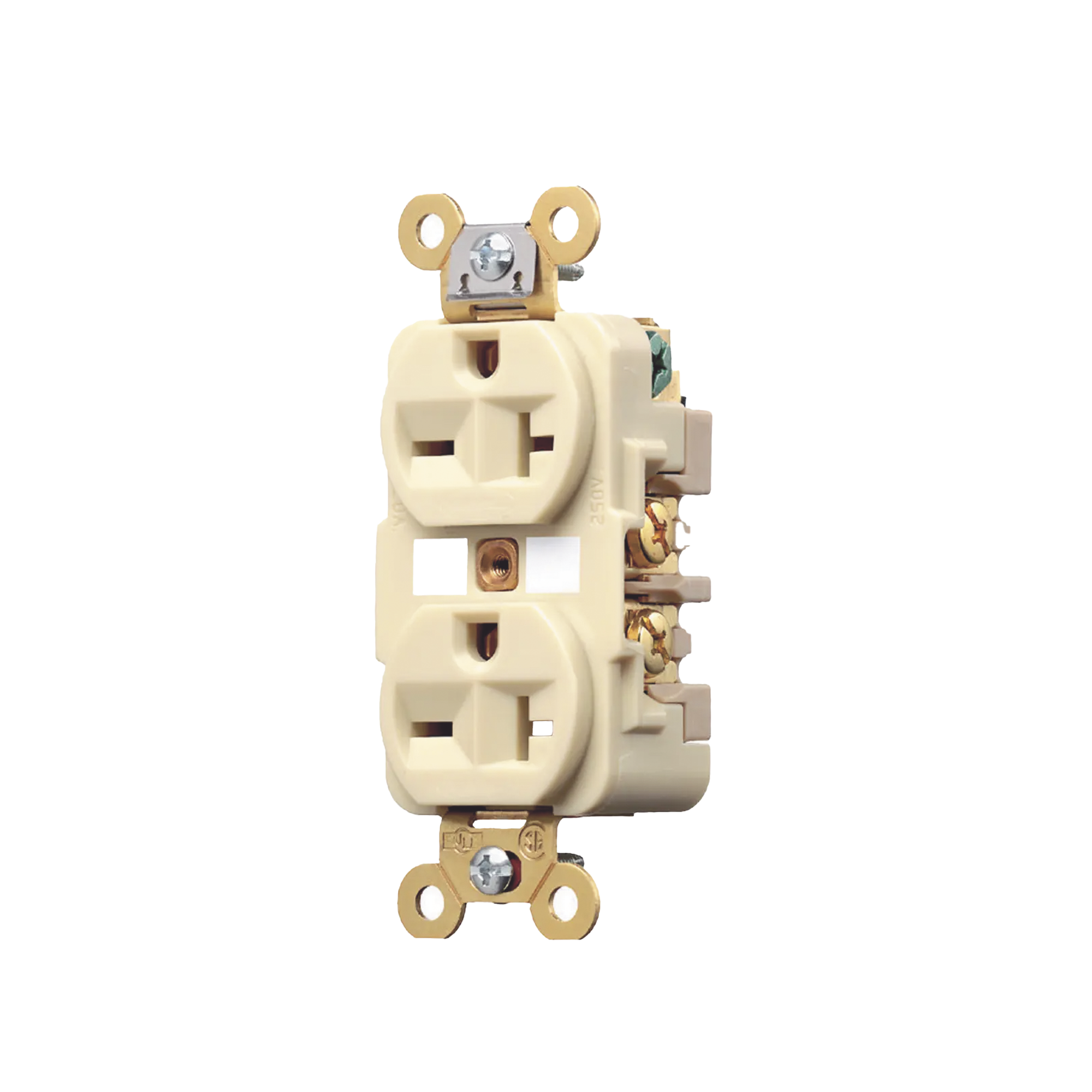 Contacto Dúplex 20 A 250 V / 2 Polos 3 Hilos / Nema 6-20R / Grado Industrial /Color Marfil. HUB-HBL-5462I
