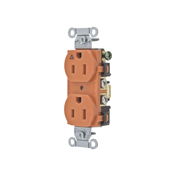 Contacto Dúplex Conexión a Tierra Aislada/ 15A 125V/ 2 polos 3 Hilos/ Nema 5-15R /Grado Comercial/ Color Naranja. HUB-IG-5252