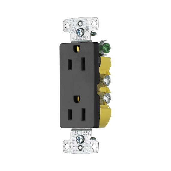 Contacto Duplex Decorador 15A 125V / 2 Polos 3 Hilos/ Nema5-15R / Color Negro. HUB-RRD-15BK