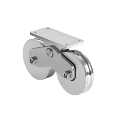Rueda doble para puertas corredizas tipo "U" Características: Diámetro de las ruedas 16 cm Para su uso en puertas corredizas Fabricada en acero galvanizado Para fijación en la parte inferior de la puerta Peso de la pieza 15.