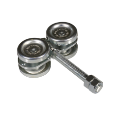 Rueda doble para puertas corredizas tipo V Características: Diámetro de las ruedas 12 cm. Para uso en puertas corredizas  Fabricada en acero galvanizado  Para fijación en la parte inferior de la puerta  Peso de la pieza  10.
