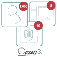 La licencia permite utilizar el software Acceso3 TITANIUM, la más completa solución de Asistencia que permite administrar los horarios, incidencias, faltas, tiempo extra etc de los empleados, con posibilidad de integrarse con los softwares de nómina más utilizados...