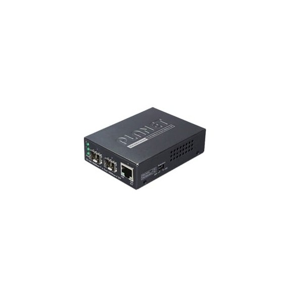 El GT-1205A está equipado con un puerto 10/100/1000BASE-T y dos ranuras SFP para admitir la conversión entre redes 10/100/1000BASE-T y 100/1000BASE-X. Las ranuras SFP duales hacen que las señales Ethernet se conecten de manera fácil y eficiente al agregar módulos de medios monomodo o multimodo o la combinación de ambos tipos. El GT-1205A brinda alta confiabilidad y flexibilidad para extender la distancia de transmisión de medios hasta 550 m o 2 km (fibra multimodo) y 10 km o más 20/40/80/120 kilómetros (fibra monomodo o fibra WDM), dependiendo de los módulos 100/1000BASE-SX/LX SFP opcionales.