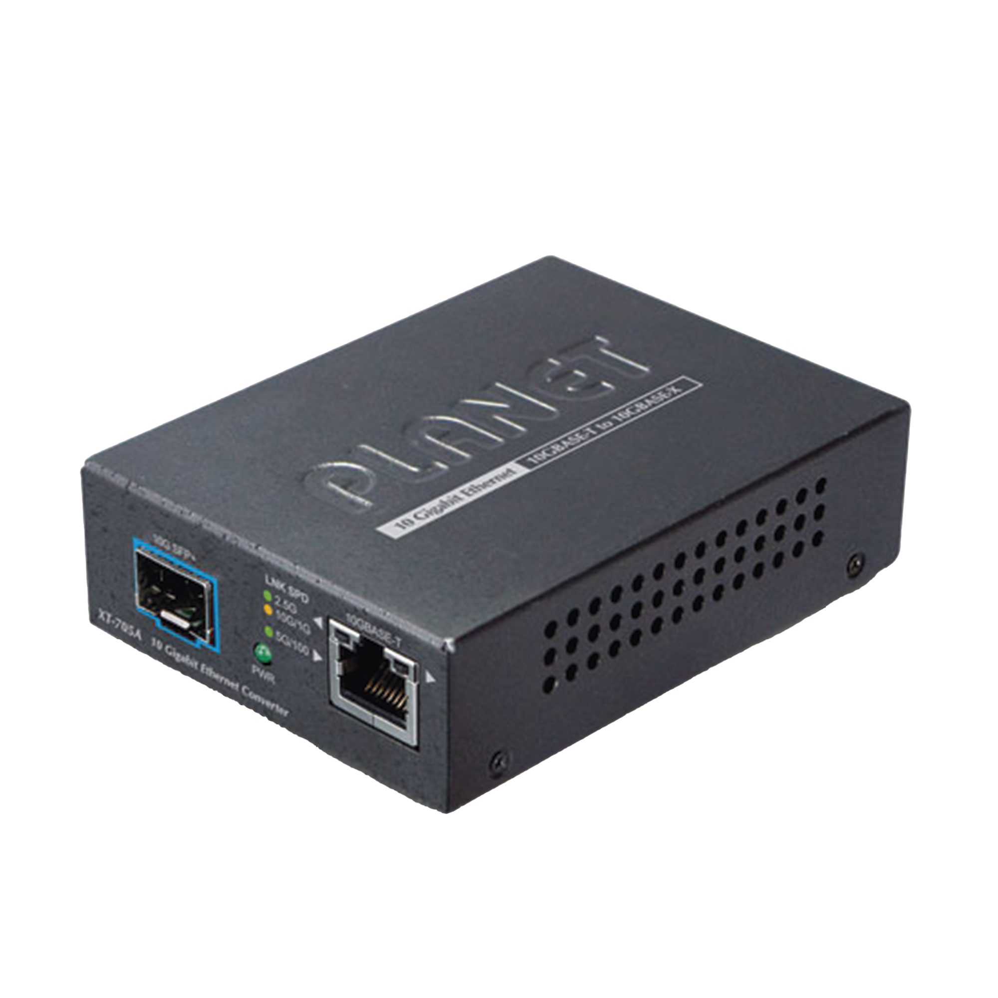 El convertidor de medios PLANET XT-705A está equipado con un puerto de negociación automática 10G/5G/2.5G/1G/100BASE-T y una ranura 10GBASE-X SFP+. Admite la conversión de medios 10Gigabit Ethernet de cobre 10GBASE-T a fibra multimodo o monomodo, utilizando un transceptor SFP+ 10GBASE-SR o 10GBASE-LR instalado en la ranura SFP+ para extender las distancias a servidores, conmutadores y paneles de conexión. La distancia de implementación se puede ampliar desde 300 metros (multimodo) hasta 60 kilómetros (modo único). Están diseñados para su uso en entornos de red donde se requiere el ancho de banda ultra alto proporcionado por 10 Gigabit Ethernet, por ejemplo, datos. centro de computación en la nube, backbones empresariales, redes de campus e infraestructura de operadores.