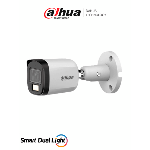 DAHUA DH-HAC-B2A51N-U-IL-A- Cámara Bullet 5 MP Serie Cooper/ Lente 2.8 mm Apertura Hasta 106°/ Iluminación Dual Inteligente/ Iluminación Hasta 30Mts IR + 20Mts Luz Calida/ Micrófono Incorporado/ Metal/ Para Exterior IP67 DH-HAC-B2A51N-U-IL-A