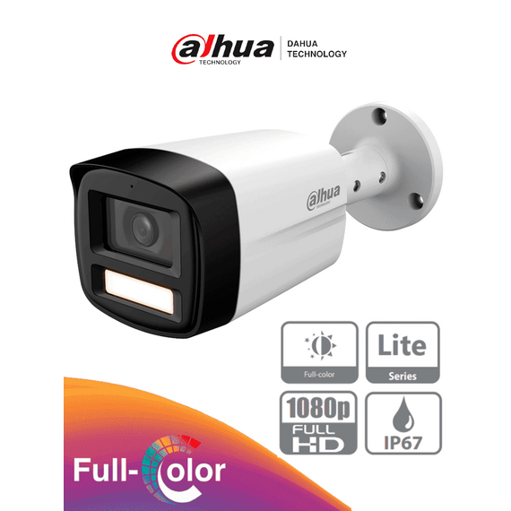 DAHUA DH-HAC-HFW1209TLMN-LED-0280B-S3 - Cámara Bullet de 2MP Full Color en 1080p con lente de 2.8mm, ángulo de 108° y alcance de iluminación de 40m, DWDR, IP67 compatible con CVI/CVBS/AHD/TVI.