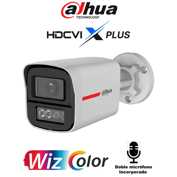 DAHUA DH-HAC-HFW1249XN-A-PRO -Cámara Bullet HDCVI 2MP WizColor/HDCVI X PLUS/ Video 24 Horas a Color/ Corrección de Distorsión de Imagen mediante IA/ Iluminador Inteligente/Hasta 50m de Dist de Ilumin/Doble Mic Incorp/ Campo de Visión de Hasta101°