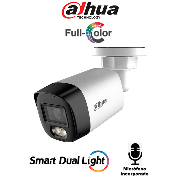 DAHUA DH-HAC-HFW1500RLN-IL-A-S3-DIP - Camara Bullet de 5 Megapixeles/ Iluminación Dual Inteligente + FullColor/ Lente de 2.8mm/ 106 Grados de Apertura/ 20 Metros de IR y Luz Visible/ Micrófono Integrado/ IP67/ Soporta: CVI/CVBS/AHD/TVI/
