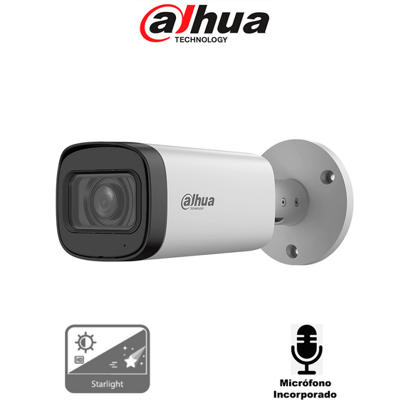 DAHUA DH-HAC-HFW1500RN-Z-A-27135-S3-DIP - Cámara Bullet de 5 Megapíxeles/ Lente Motorizado de 2.7 a 12 mm/ Micrófono Integrado/ IR de 60 Mts/ Metálica/ IP67/ BLC/HLC/DWDR/