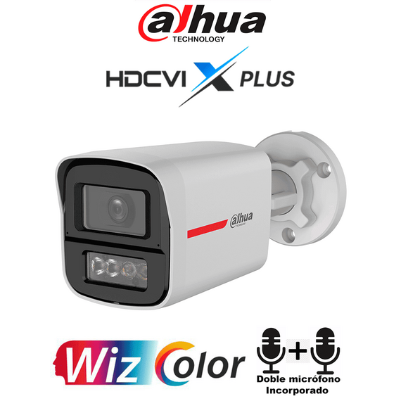 DAHUA DH-HAC-HFW1549XN-A-PRO - Cámara Bullet 5MP WizColor/Imagen 24 Horas a Color/Corrección de Dist de Imagen Mediante IA/ Iluminador Int con Luz Calida/Hasta 50m Ilumin/Doble Mic Incorp/Campo de Visión de Hasta 101°/WDR Real/Policarbonato+Metal DH-HAC-H