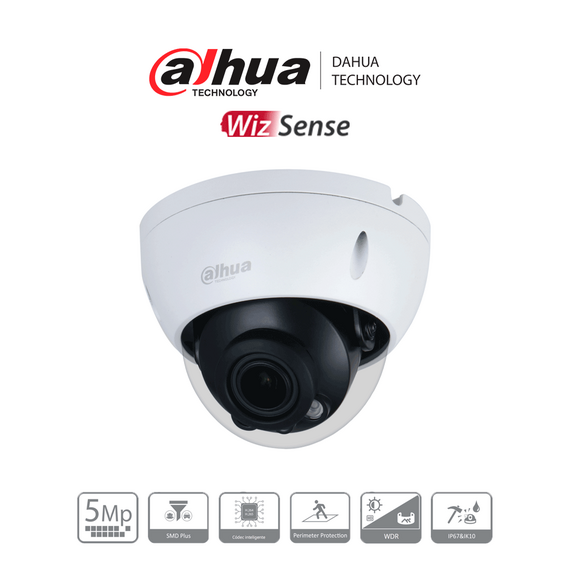 DAHUA DH-IPC-HDBW2541R-ZAS - Domo Antivandalico de 5 Megapixeles/ Lente Motorizado de 2.7-13.5/ WizSense/ IR de 40 Metros/ Ranura MicroSD/ E&S de Alarma/ Ik10/ PoE/ SMD Plus/ DH-IPC-HDBW2541R-ZAS