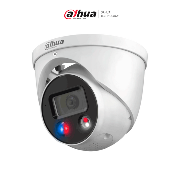DAHUA DH-IPC-HDW3849H-AS-PV-S5 - Cámara IP Domo de 8 Megapixeles con Disuasión Activa/ Iluminador Dual Inteligente/ TiOC/Qucik Pick/ WizSense/ Lente de 2.8 mm/ 106 Grados de Apertura/ 30 Metros de IR y Luz Visible/ Audio 2 Vías/ E&S de Alarma/