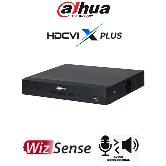 DAHUA DH-XVR5104HS-I3/T -DVR de 5MP Lite con WizSense/HDCVI X PLUS/ Soporta 4 canales+ 2 IP o hasta 6 canales IP/Audio Bidireccional en los 4 Canales/ Reconocimiento facial y protección perimetral en 1 canal/incluye SDM Plus, codificación H.265+