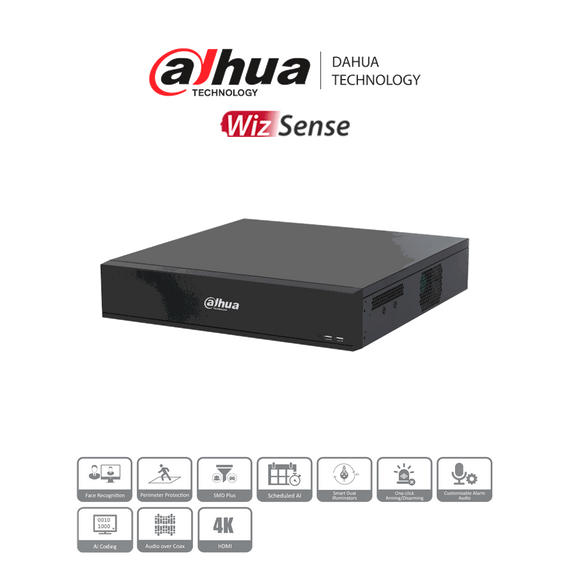 DAHUA DH-XVR7816S-4K-I3 -DVR de 16 Canales 4k/ WizSense/ H.265+/ 8 Bahías de Discos Duros/ +16 Canales IP/ 6 Canales con Reconocimiento Facial/ SMD Plus/ Codificación IA/ IoT & POS/