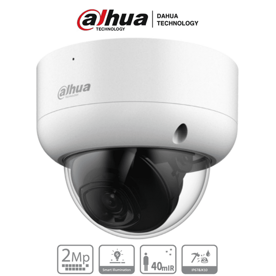 DAHUA HAC-HDBW1200EA - Cámara Domo de 2 Megapíxeles Antivandálica/ 1080p/ Lente 2.8 mm/ 115 Grados de Apertura/ IR de 40 Metros/ Super Adapt/ Protección IK10/ Uso Exterior IP67/ Soporta: HDCVI/TVI/AHD y CVBS/