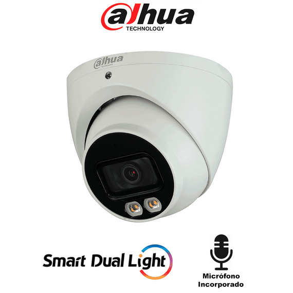 DAHUA HAC-HDW1239TN-IL-A-S2 - Camara Domo de 2 Megapixeles/ Iluminador Dual Inteligente+Full Color/ Lente de 2.8 mm/ 107 Grados/ Microfono Integrado/ WDR Real de 130 dB/ 40 Metros de Iluminación IR y Visible/ IP67/