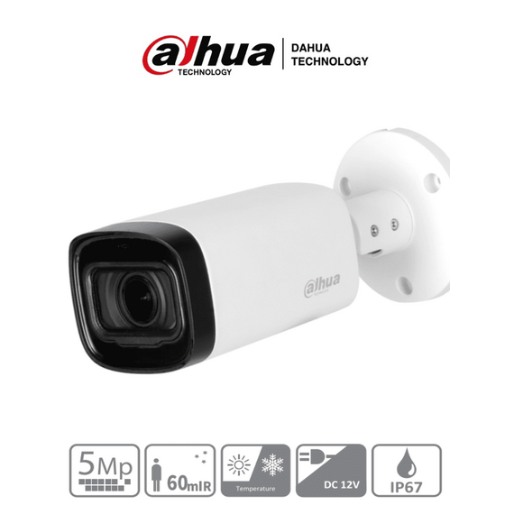 DAHUA HAC-HFW1500R-Z-IRE6 - Camara Bullet de 5 Megapixeles/ Lente Motorizado de 2.7 a 12 mm/ IR de 60 Mts/ Metálica/ IP67/ BLC/HLC/DWDR/ Soporta: CVI/CVBS/AHD/TVI/