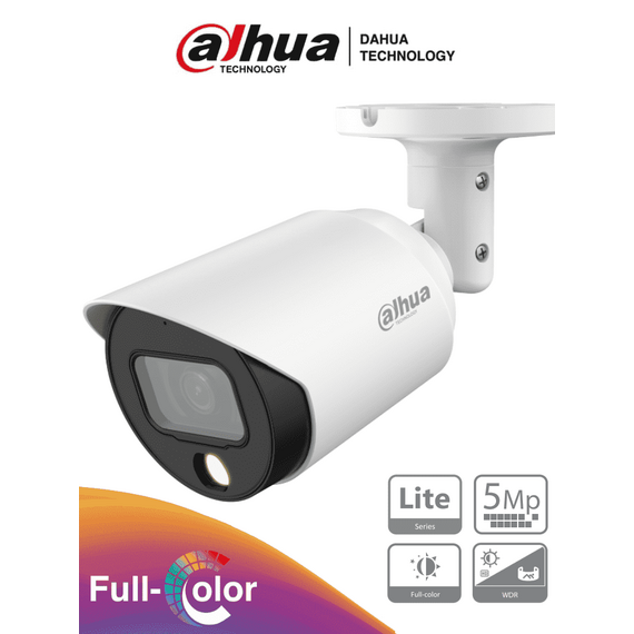 DAHUA HAC-HFW1509TN-LED - Camara Bullet Full Color de 5 Megapixeles/ Lente de 2.8mm/ 112 Grados de Apertura/ Leds para 20 Metros/ Metalica/ WDR de 120 dB/ IP67/