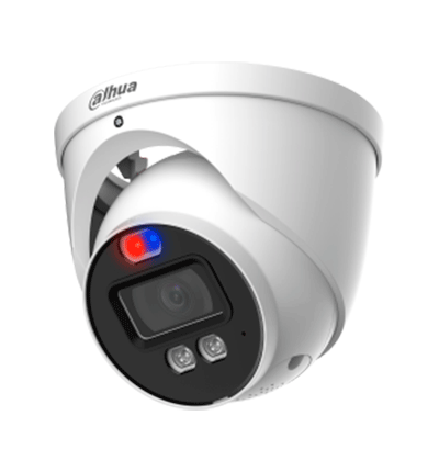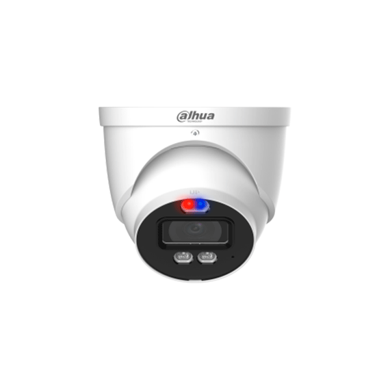 Dahua HAC-ME1239HN-A-PV - Cámara Domo TiOC de 2 Megapixeles/ Disuasion Activa Luz Roja y Azul/ Lente de 3.6 mm/ Super Adapt/ Microfono y Altavoz Integrados/ 40 Metros de Iluminación (IR y Cálida)/ Metalica/ IP67/ DH-HAC-ME1239HN-A-PV