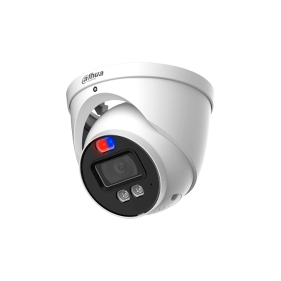 Dahua HAC-ME1239HN-A-PV - Cámara Domo TiOC de 2 Megapixeles/ Disuasion Activa Luz Roja y Azul/ Lente de 3.6 mm/ Super Adapt/ Microfono y Altavoz Integrados/ 40 Metros de Iluminación (IR y Cálida)/ Metalica/ IP67/