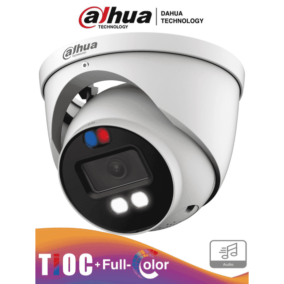 DAHUA HAC-ME1509H-A-PV-S2 - Camara Domo TioC de 5 Megapixeles/ Iluminador Dual Inteligente/ Lente de 2.8mm/ 111 Grados de Apertura/ 40 Metros de Iluminación Visible e IR/ Estrobo de Luz Roja y Azul/ Super Adapt/ Microfono Integrado/ WDR Real/