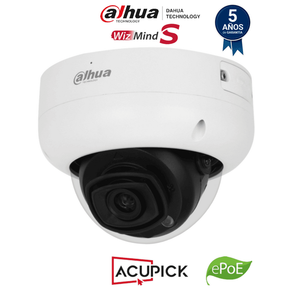 DAHUA IPC-HDBW5241R-ASE-S3 - Cámara IP Domo 2MP Antivandálica/ WizMind/ Lente 2.8 mm/ 106° Apertura/ IR 50m/ E&S Alarma y Audio/ ePoE/ WDR/ IP67/ IK10/ Micrófono integrado/ Ranura MicroSD/ Conteo de Personas/ AcuPick/