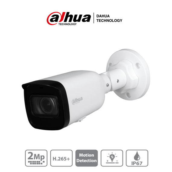 DAHUA IPC-HFW1230T1N-ZS - Camara IP Bullet de 2 Megapixeles/ Lente Motorizado de 2.8 a 12mm/ H.265+/ IR de 50 Mts/ IP67/ PoE/ Ranura para MicroSD/ DWDR/ 3D DR/ HLC/ BLC/