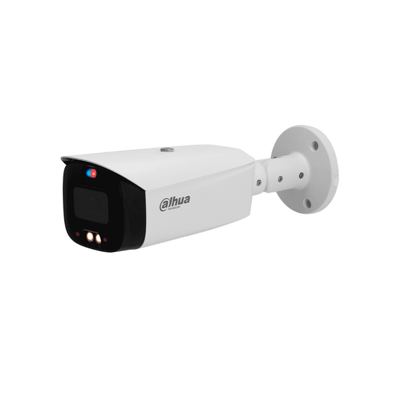DAHUA IPC-HFW3449T1-AS-PV-V2 Cámara IP Bullet 4MP ofrece TiOC, WizSense, AcuPick, Iluminador Dual, Disuasión Activa, Lente 3.6mm, asi como sirena y estrobo azul y rojo, SMD 4.0 y protección IP67. Con ranura micro SD.
