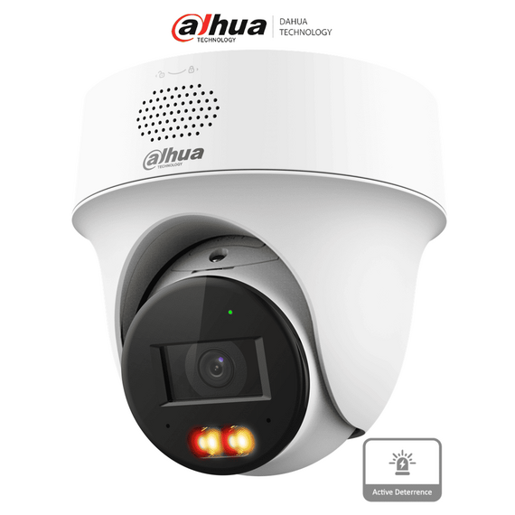 DAHUA IPC-PT1239H-PV-0280B - Cámara PT IP domo de 2 Megapixeles / Lente de 2.8 mm/ 30 Metros de Iluminación Dual Inteligente/ Audio dos vías/ Detección de humanos y vehículos/ Protección Perimetral/ Disuasión activa/ PoE/ IP66/