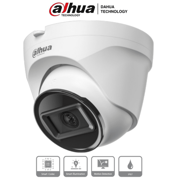 DAHUA IPC-T1E20 -Camara IP Domo de 2 MP, lente de 2.8 mm y 99° de visión. Alcance IR de 30 m, protección IP67 y alimentación PoE. Funciones avanzadas: DWDR, 3D NR, HLC, BLC y compresión H.265+ Ideal para videovigilancia confiable DH-IPC-T1E20