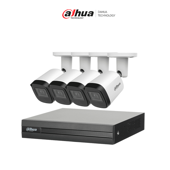 DAHUA KITXVR1B04H-I4B2A51-U - Kit de 4 Cámaras metálicas 5 MP Lente de 2.8mm y un DVR Cooper-I WizSense, 4 Canales + 1 IP o Hasta 5 Canales IP. Soporta Con IA, H.265+, SMD Plus y Búsqueda de Humanos y Vehículos. DH-KIT/XVR1B04H-I/4-B2A51N-U-0280B-S2
