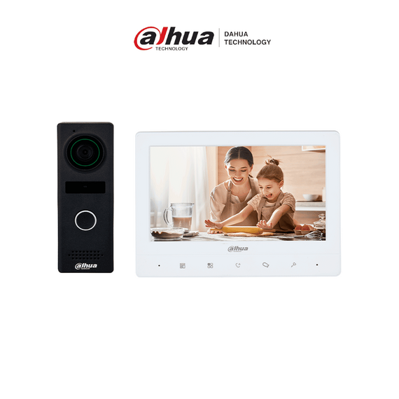 DAHUA KTA02M - Kit de videoportero analógico con frente de calle metálico y cámara de 1.3 MP, DWDR e IR automático. Incluye monitor TFT de 7\", entrada y salida de audio, y soporte para botón de salida. Ideal para seguridad y comodidad/ DHI-KTA02M