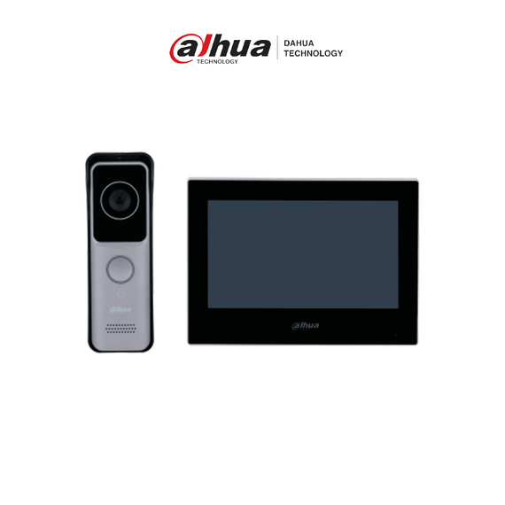 DAHUA KTW02 - Kit de Videoportero IP Wifi/ Monitor de 7 Pulgadas Wifi/ 6&1 E&S de Alarma/ Soporta PoE/ Frente de Calle con Camara de 2 Megapixeles/ Ranura MicroSD/ Apertura de Puerta/ Soporta Hasta 3000 Tarjetas/ IP65/