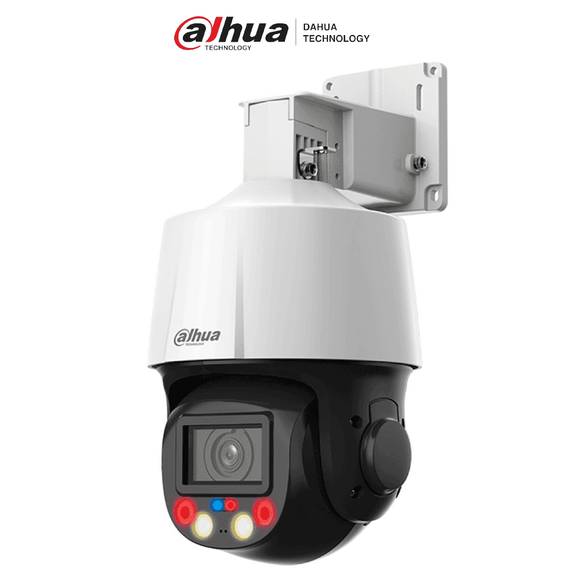 DAHUA SD3E405DB-GNY-A-PV1 - Camara IP PTZ de 4 MP TiOC de 5x de Zoom Optico/ Iluminación Dual Inteligente/ Disuasión Activa con Luz Roja y Azul/ IR de 50 Metros/ Micrófono y Altavoz Integrado/ Audio 2 Vías/ Ranura para MicroSD/ IP66/ PoE