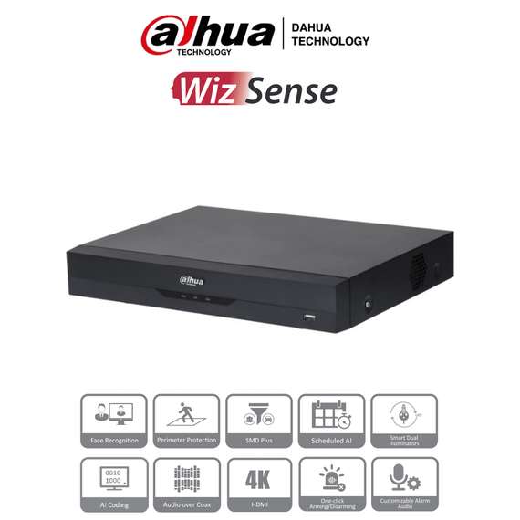 DAHUA XVR5116H-4KL-I3 - DVR de 16 Canales 4k/ 8 Megapixeles/ WizSense/ IA/ H.265+/ 16 Canales + 16 IP/ Hasta 32 Ch IP/ 2 Canales de Reconocimiento Facial/ SDM Plus/ Codificación con IA/ 1 Bahía de Disco Duro/ Funciones IoT & POS/