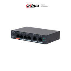 DAHUA DH-CS4006-4ET2ET-60 - Switch PoE de 6 Puertos Administrable con 4 PoE (10/100 Mbps) y 2 uplink (10/100 Mbps). Total de 65 W PoE, administración en la nube con DoLynk Care, carcasa metálica robusta, ideal para redes IP.