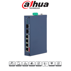 DAHUA DH-CHS4206-4ET-90 - Switch PoE de 6 Puertos Semi Industrial/ 4 Ptos Downlink PoE/ 2 Ptos Uplink SFP Gigabit/ Hasta 120W Totales/ 802.3AF & AT/ 1 Pto Hasta 90W/ Administrable Cloud Vía Dolink Care