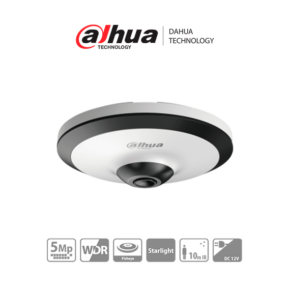 DH-HAC-EW2501N - Cámara Fisheye HDCVI 5 MP, visión 360°, IR 10 m, WDR real 120dB, micrófono integrado. Ideal para uso interior con tecnología Starlight para baja luz y reducción de ruido 2D/3D. Ofrece vigilancia detallada y nítida en todas condiciones. DH
