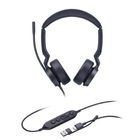 Auriculares USB con cancelación de ruido dual-mic y control integrado
